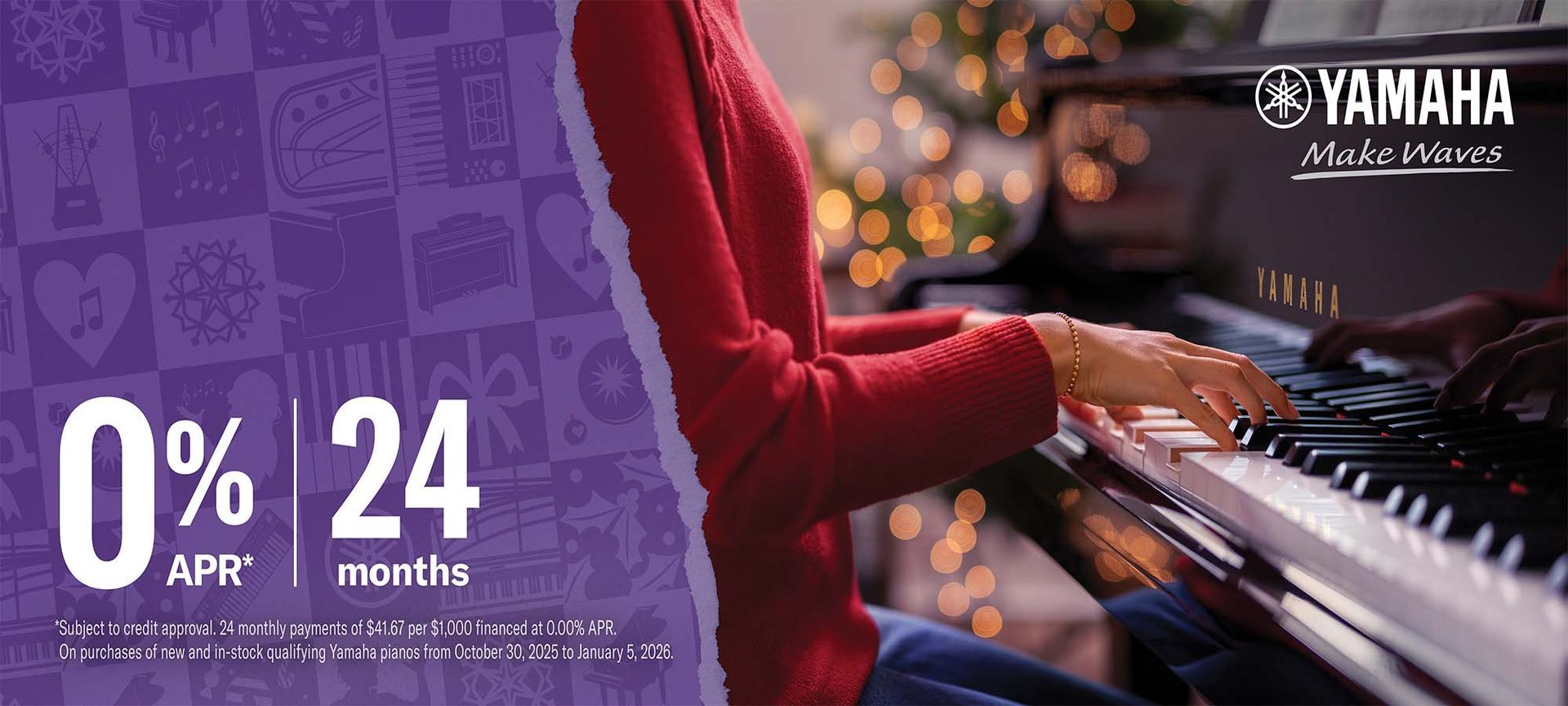 Subject to credit approval. 24 monthly payments of $41.67 per $1,000 financed at 0.00% APR. On purchases of new and in-stock qualifying Yamaha pianos from April 1, 2025 to June 2, 2025.