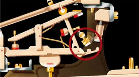 Grand piano with SILENT Piano SC2 and SH2type features a quick escape system that allows the sound muting mechanism to be fitted to a grand piano without sacrificing any of the playability or musical expression demanded of such instruments in an acoustic performance. This system allows optimal separation to be obtained between the hammers and strings by adjusting the distance between the hammers and strings, ensuring that the feel of the keyboard stays in the best possible condition whether playing acoustically or with the sound muted.